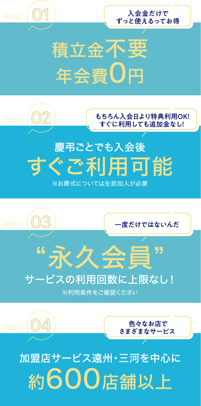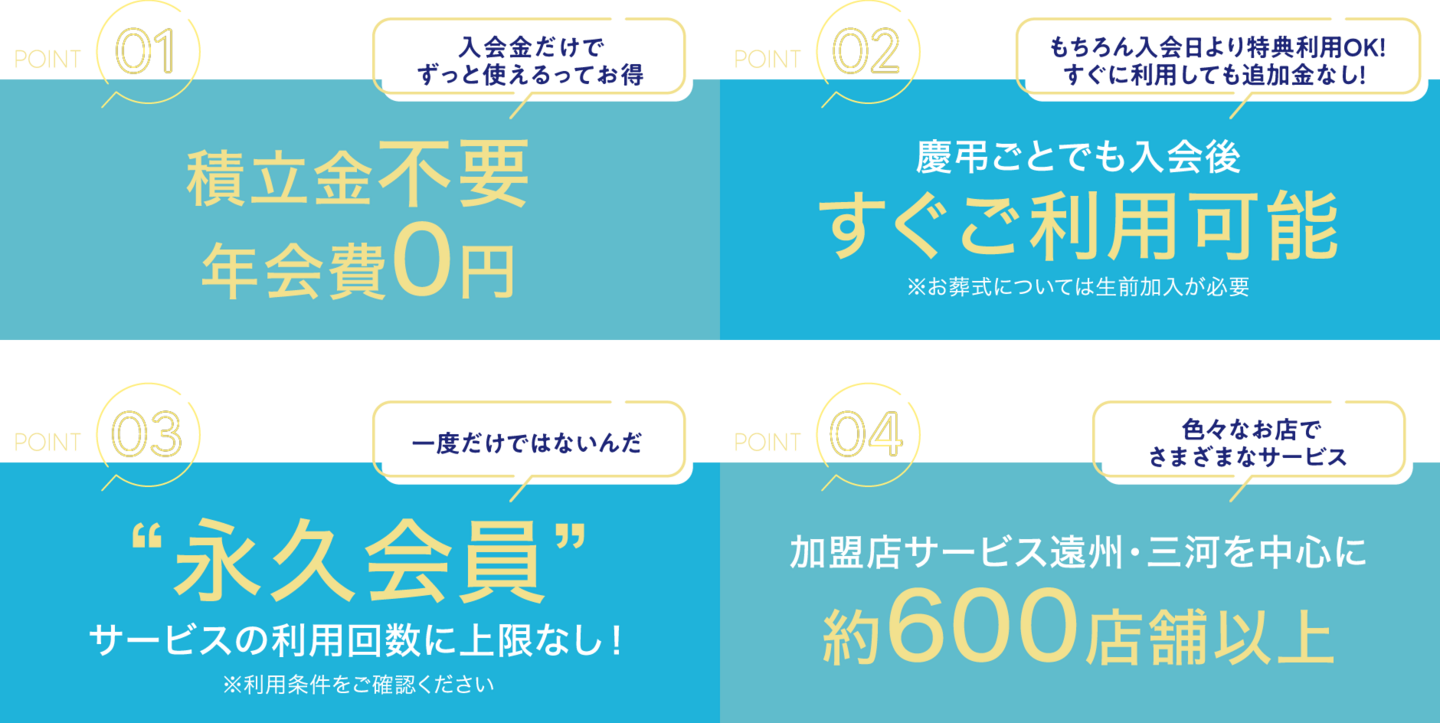 いままでの冠婚葬祭制度とは一線を画した、これからの時代にピッタリな会員制度です。