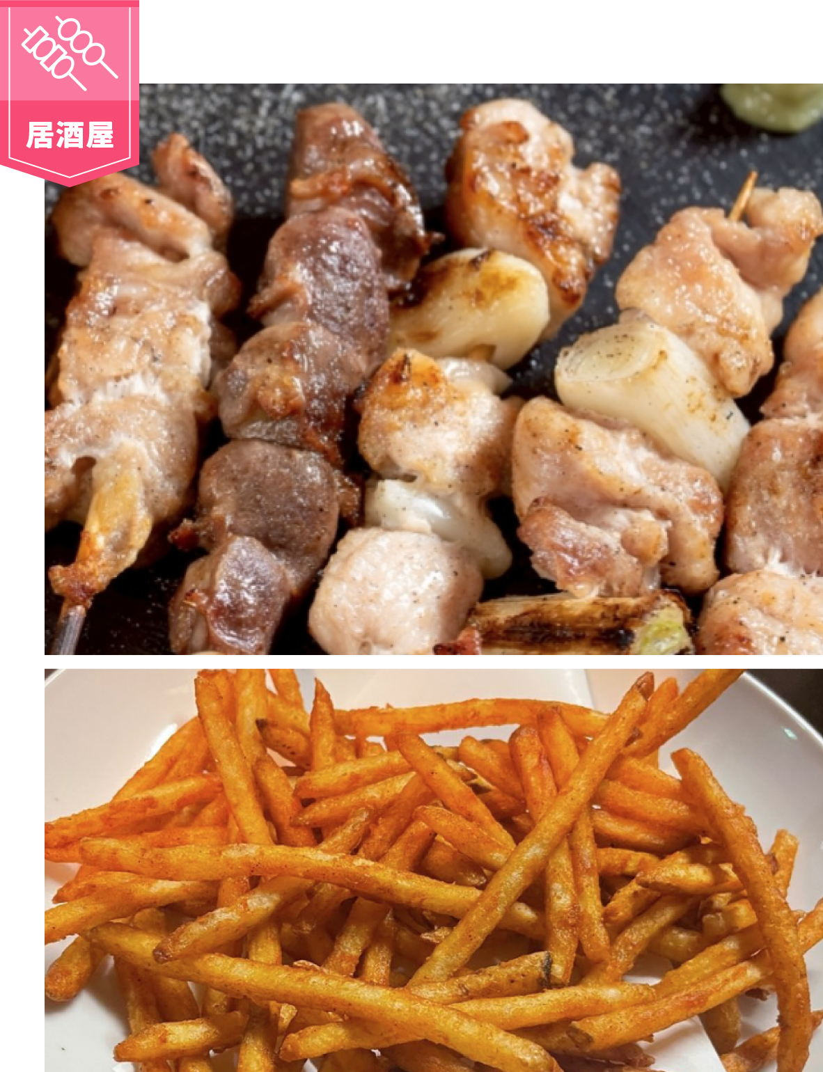 自慢のやきとりに試行錯誤して作ったタレが絶品な骨付きチキン、カリカリポテトや期間限定メニューなど酒のつまみにぴったりなメニュー揃ってます。