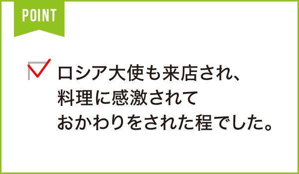 「一期一会」の心を大切に本格的なロシア料理をご提供いたします