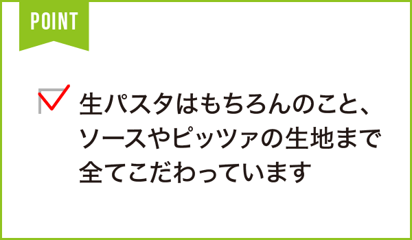 独自の製法で製造した生パスタはもっちもちの食感が特徴です