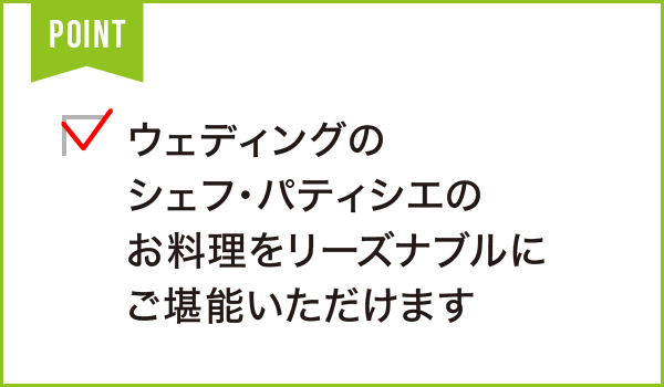 ウェディングのシェフ・パティシエがその日の新鮮な材料を手作りし、リーズナブルにお料理をお楽しみ頂けます♪店内で焼いている美味しい自家製パンはランチタイム食べ放題!パン好きさんやランチもしっかり楽しみたい方にもピッタリ!時間を忘れてしまうくらい、ゆったりとくつろげる空間は女性に大人気です。居心地のいい空間に、ついつい長居したくなってしまいます…♪少人数のPARTY利用にもおススメです◎