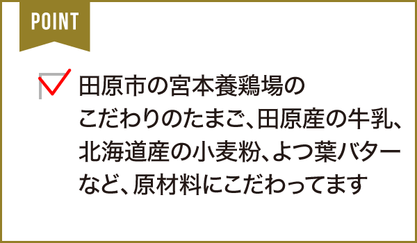 こだわりの卵をはじめ、安心・安全な原材料を使用した洋菓子店