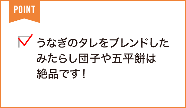 浜松名物の焼き餃子をメインにうなぎのタレをブレンドしたみたらし団子や五平餅など観光客の皆さまにも楽しんでいただけるお食事をご提供しています。門前通りでのご休憩にぜひお立ち寄りください。